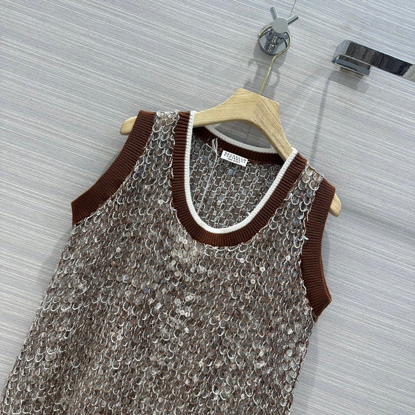 New Brunello_cucinelli 23 Spring and Summer Mermaid 🧜♀️ Shining Fish Scale Sequin Knitted Long Tank Top