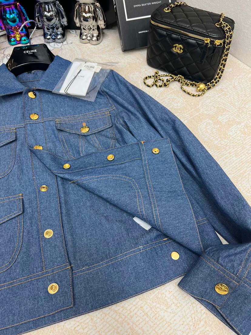 Home / Celine / New Celin 2023 Pre Autumn New Double Pocket Metal Buckle Thin Denim Shirt
