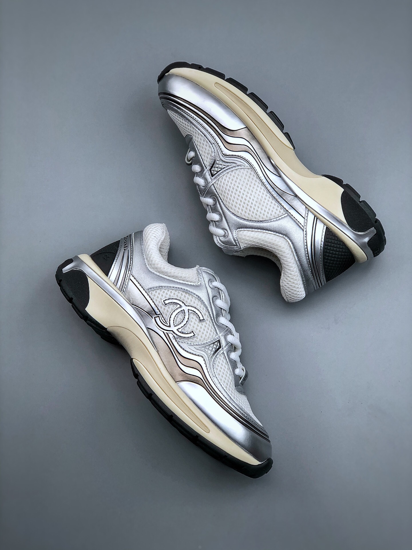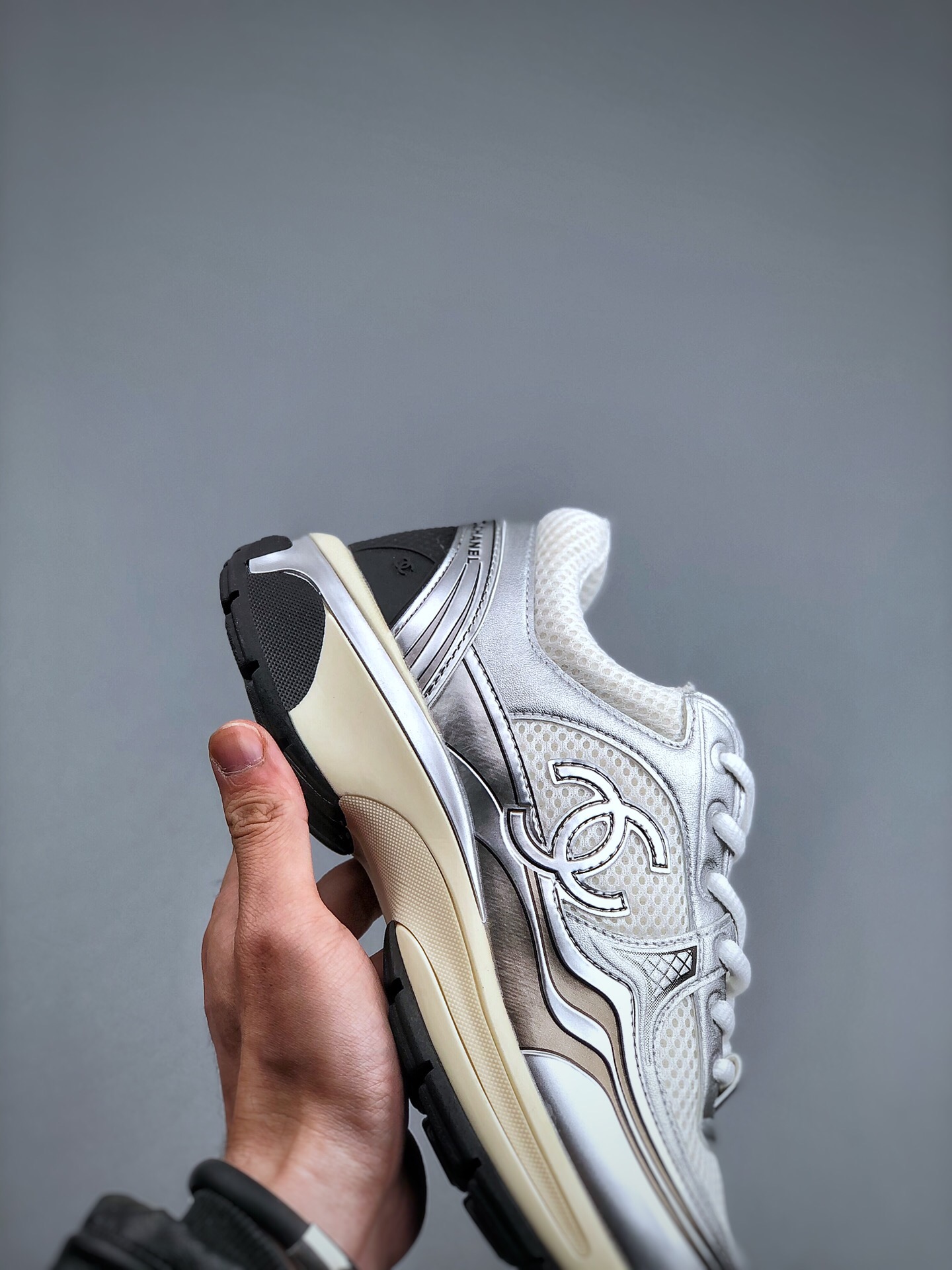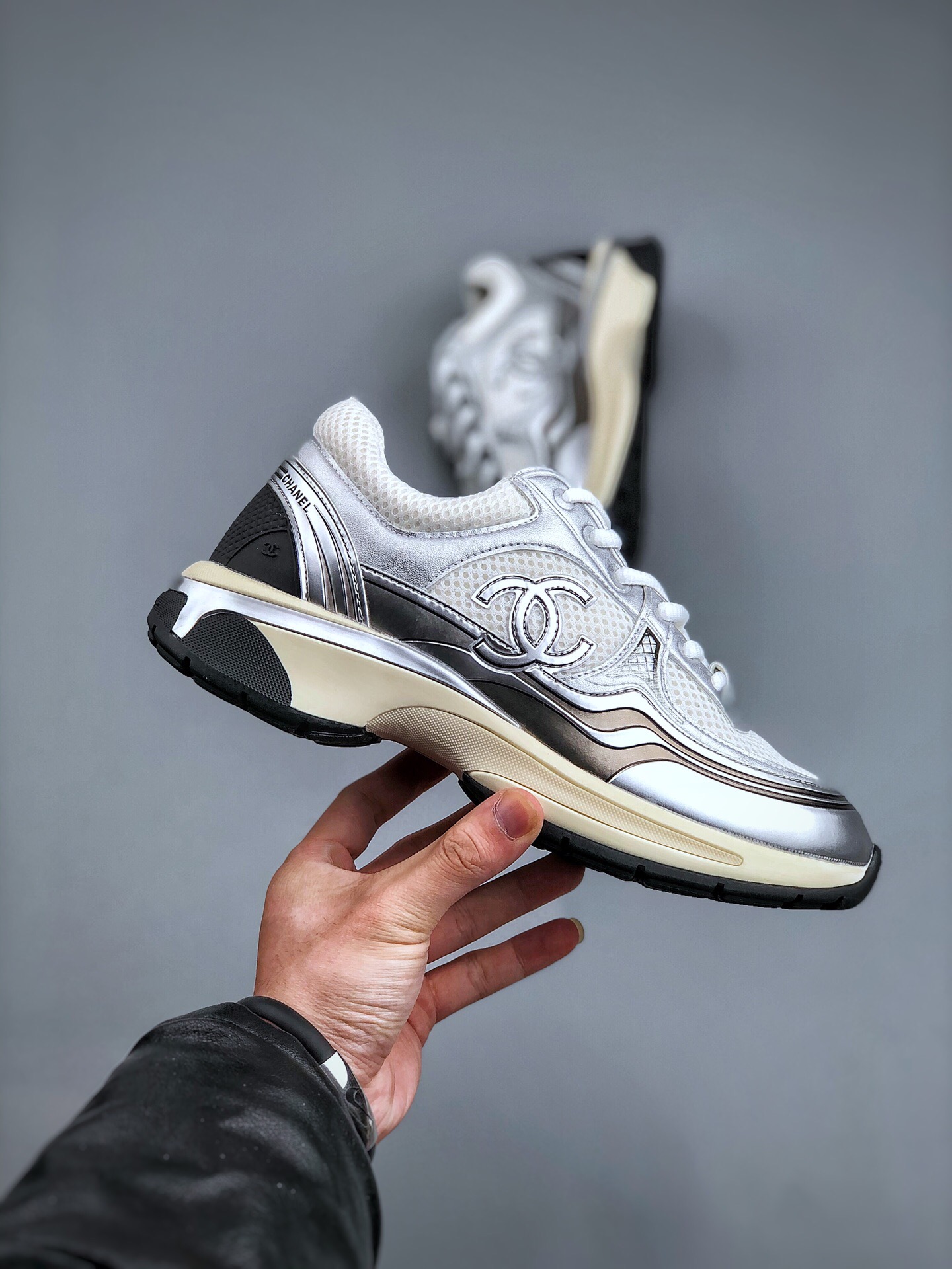DetailChanel Chanel 23c Early Spring Vacation Series Xiaoxiang Metal Casual Sports Shoes Gold and Silver Corner King's latest foreign runway series Chanel Chanel 2023 Early Spring Series is held in the second smallest country in the world. Inspired by Monaco's international seaside lifestyle, the series has created various and unique new series of Racing driver's helmets, one-piece suits and other elements from F1 racing track to beach swimming pool, casinos to tennis courts, which have been reinterpreted to make the distribution counter more fashionable 🛍📦▪ Fabric: Original imported metal cowhide+technological fabric ▪ Inner lining: Original customized breathable mesh lining ▪ Sole: Original molded ultra light foam combination outsole ▪ Bottom thickness: 3.5cm ▪ Size: Women's 35-40