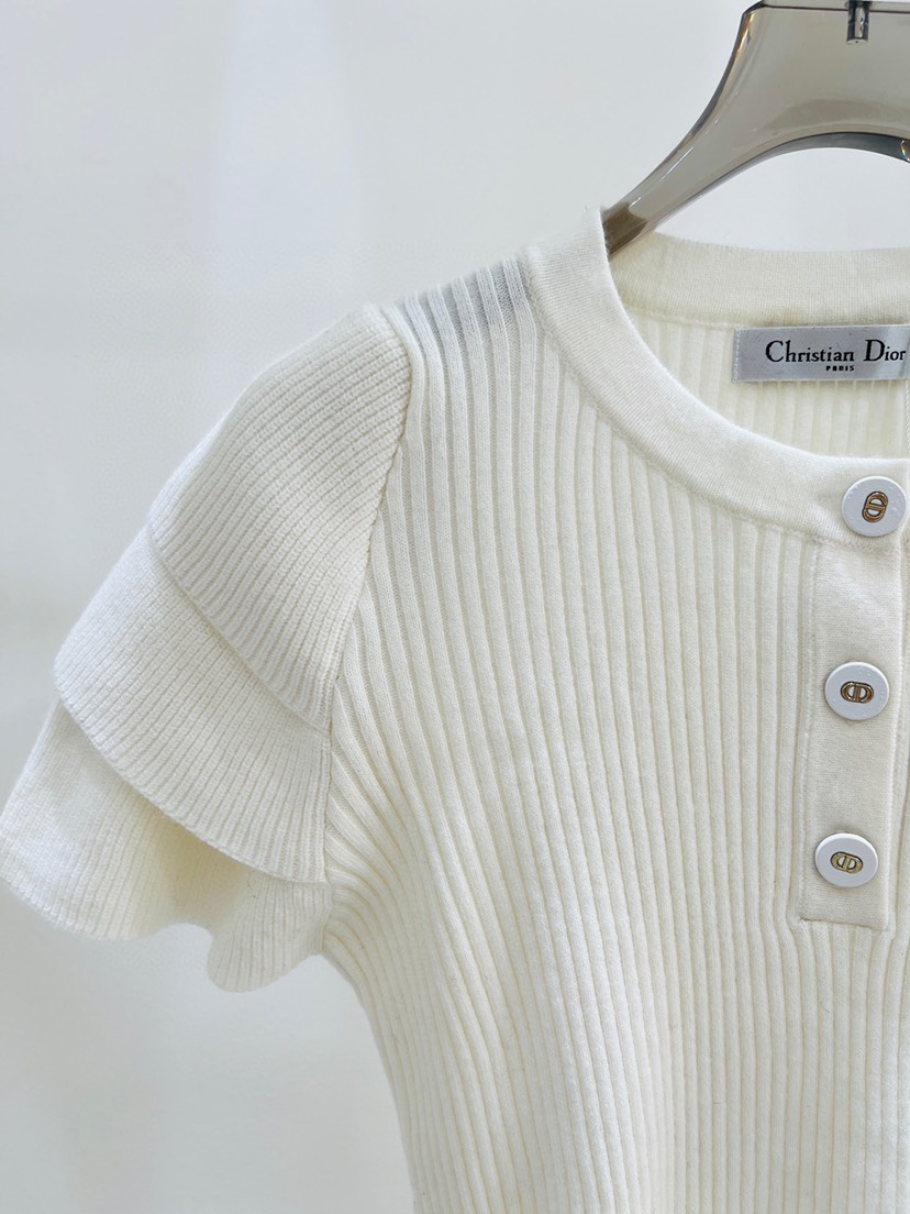 New ❤️ Dior Small Flying Sleeve Knitted Short Sleeve
