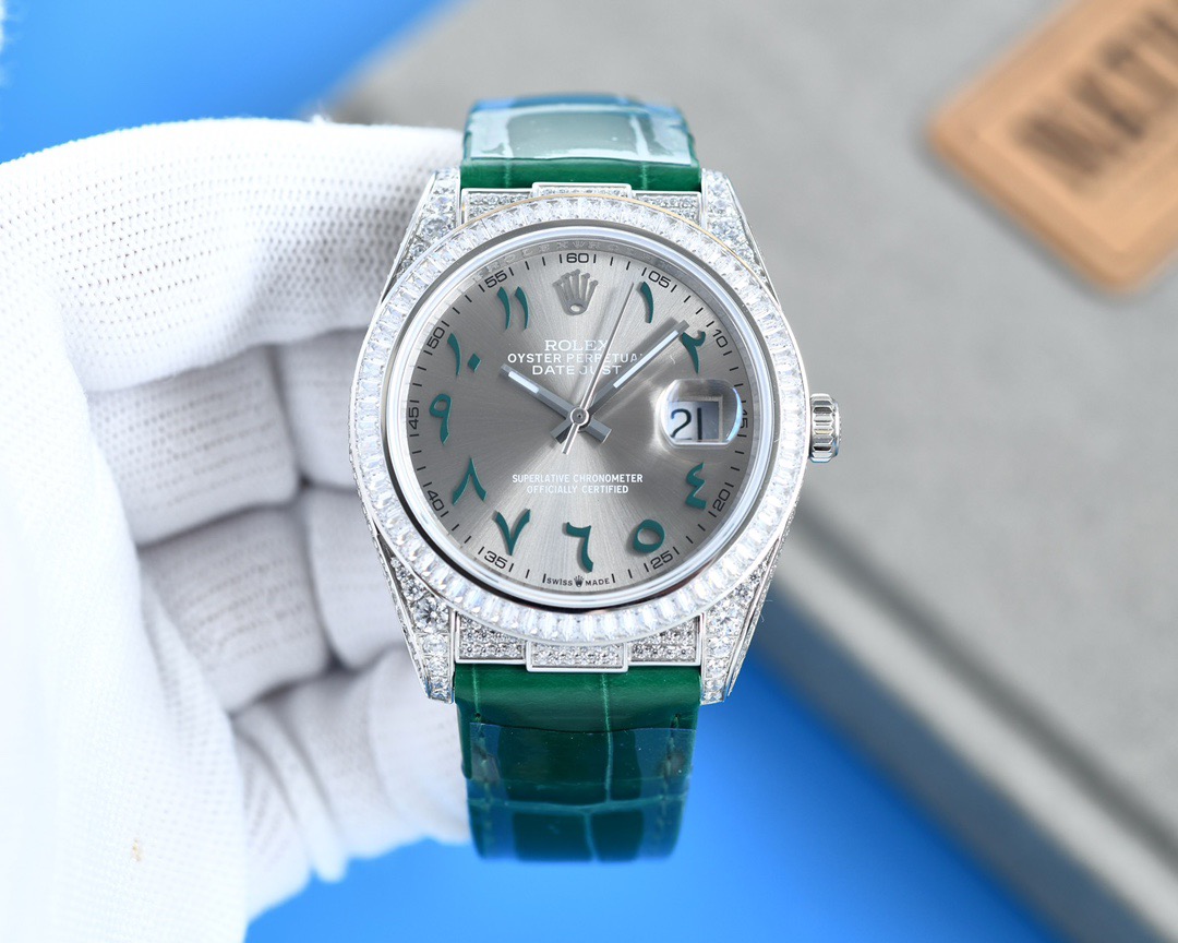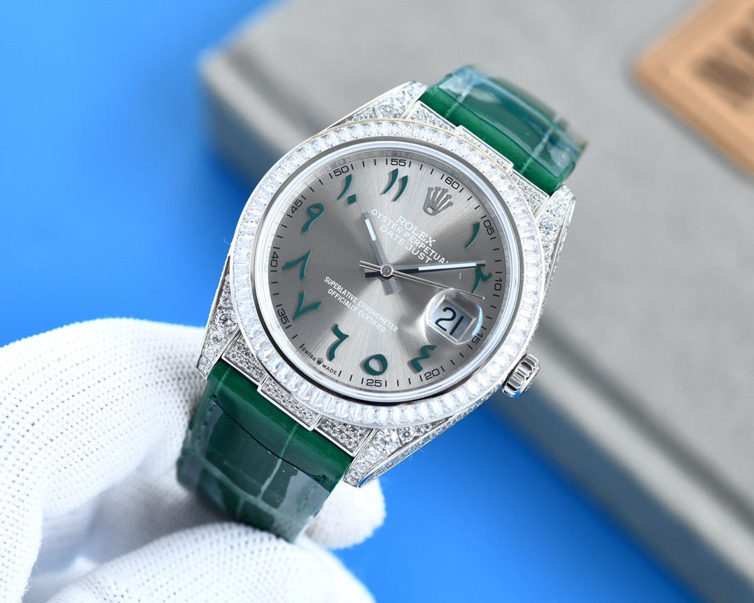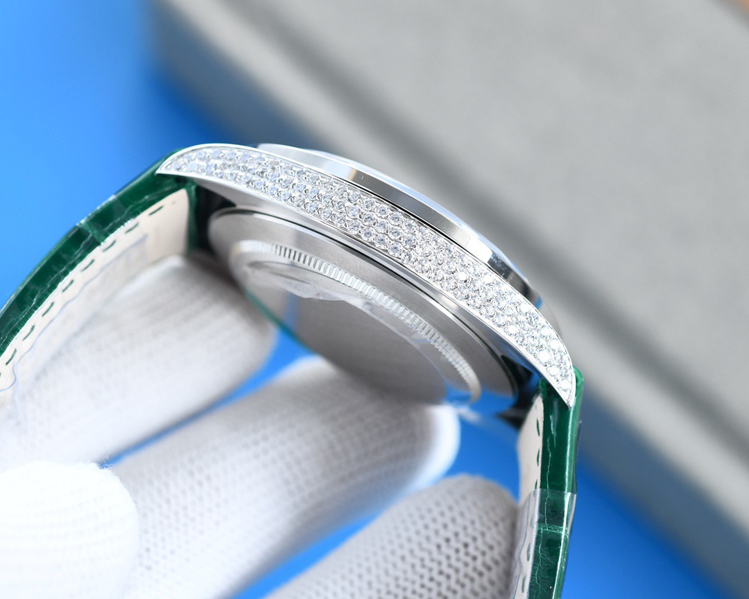 Rolex Logbook Full Sky Star Crocodile Leather Series Watch. 🎊 With the top Swarovski diamond inlaid, the interpretation of luxury quality is dazzling, and the craftsman spirit is perfectly displayed. A symbol of luxurious and noble status, suitable for important occasions! one ⃣ Equipped with ETC2836 fully automatic mechanical movement, strong stability! two ⃣ Sapphire mirror! The more delicate color on the face creates a visual effect that is consistent with the genuine product, with an anti reflective and protruding enlarged calendar window. : 3 ⃣ The watchcase buckle is made of top grade 904 steel, closely inlaid with top grade Swarovski diamond. Size: 40mm diameter. four ⃣ The watch strap is made of American alligator skin and the original folding buckle, which can connect the watch case more carefully and optimally! The details of the buckle are also engraved in place Reproduce with sincerity, let's work together once and for all! 😍 I have always dreamed of, and now I can have tentacles!