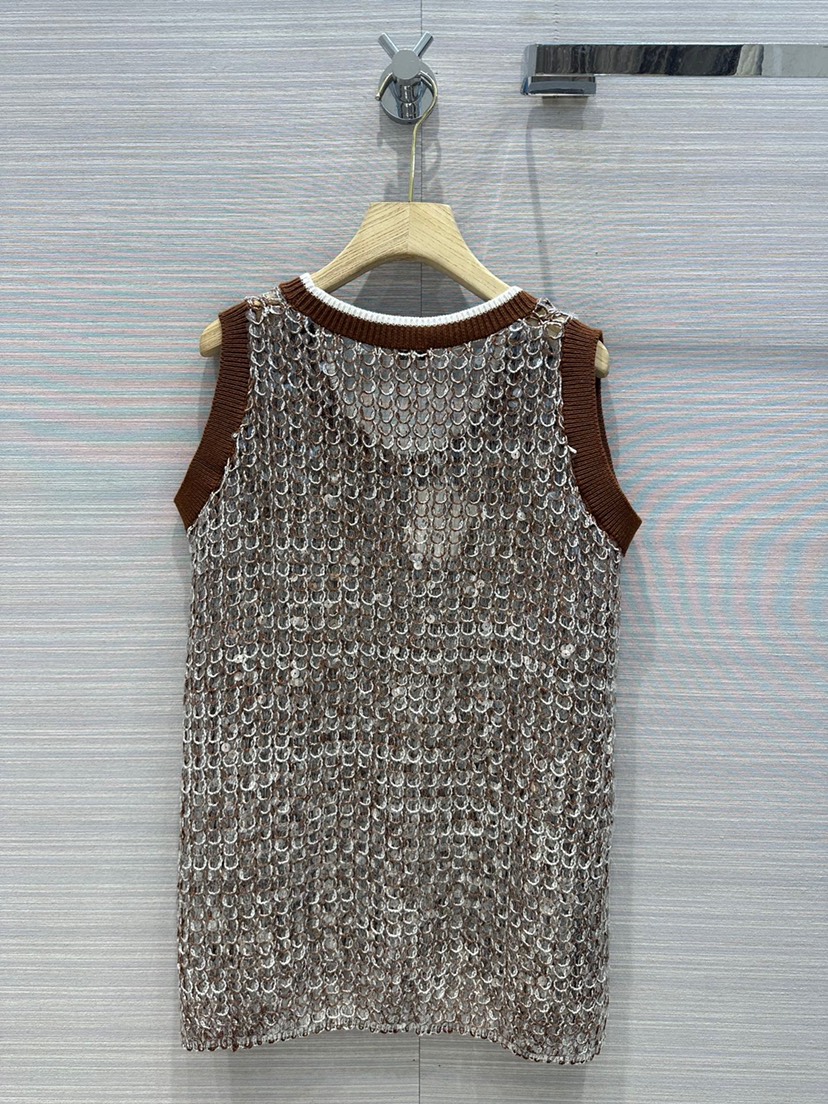 New Brunello_cucinelli 23 Spring and Summer Mermaid 🧜♀️ Shining Fish Scale Sequin Knitted Long Tank Top