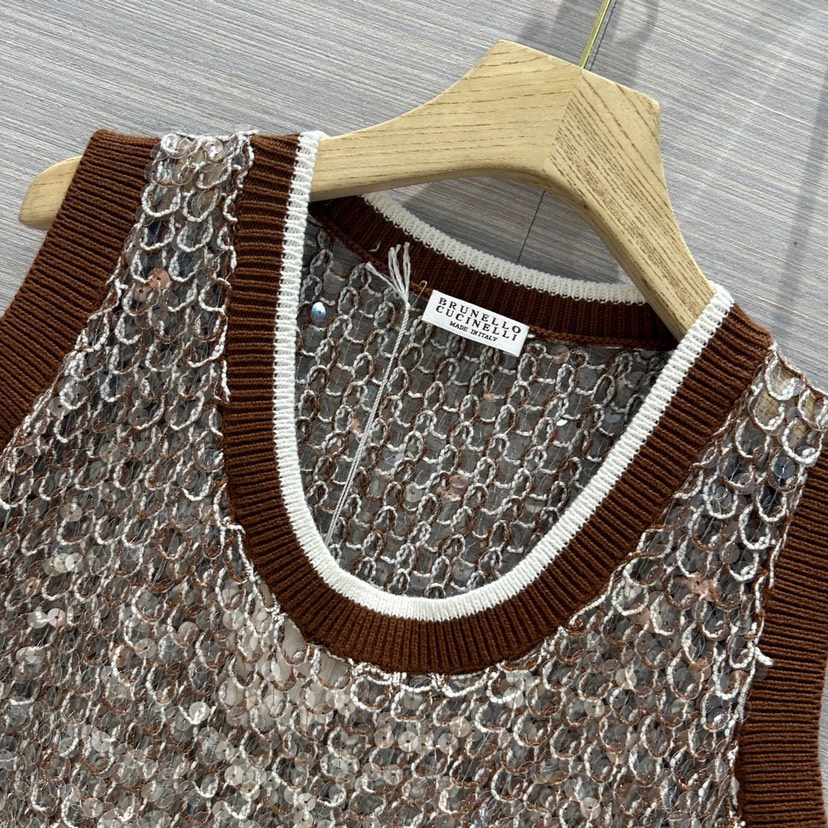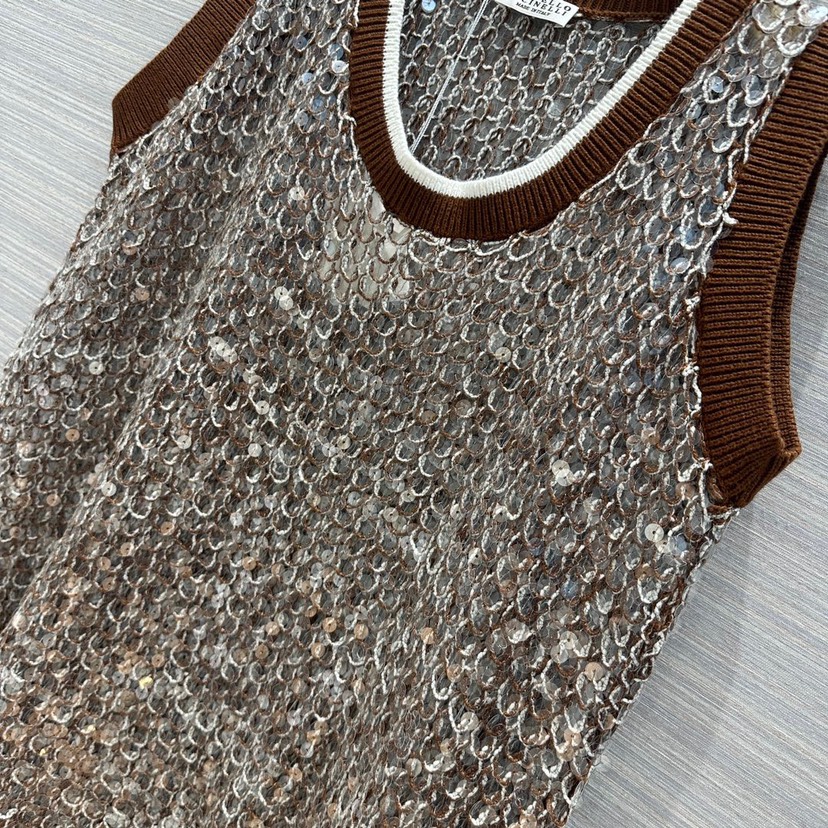 Exclusive Launch 🍒 High end original quality! Walking high definition bro * ello cu * inelli23 spring and summer mermaids 🧜♀️ Shining fish scale sequin knitted long tank top, with a layered design that is a masterpiece! Heavy Industry Luxury Jue Jue Zi! Imported yarn with Swiss woven craftsmanship and ribbed patchwork collar design create a youthful and luxurious sense of luxury! The loose fit is effortless and elegant. Classic and flawless upper body looks super slim, all in one size s-l. Size m: Bust 102, length 70.