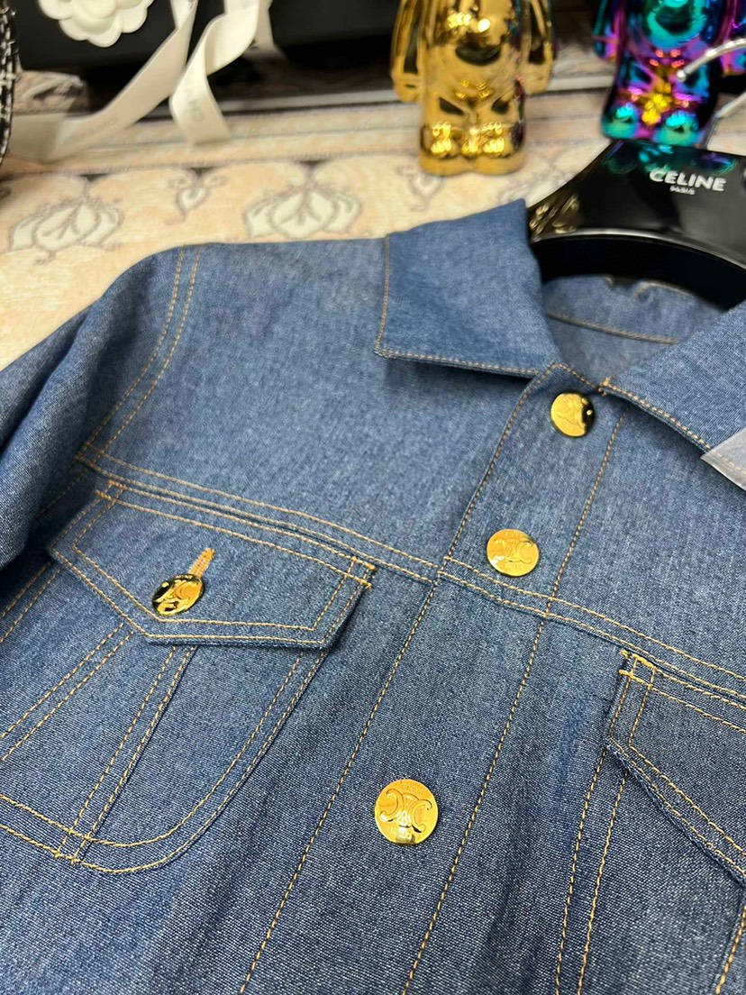 Home / Celine / New Celin 2023 Pre Autumn New Double Pocket Metal Buckle Thin Denim Shirt