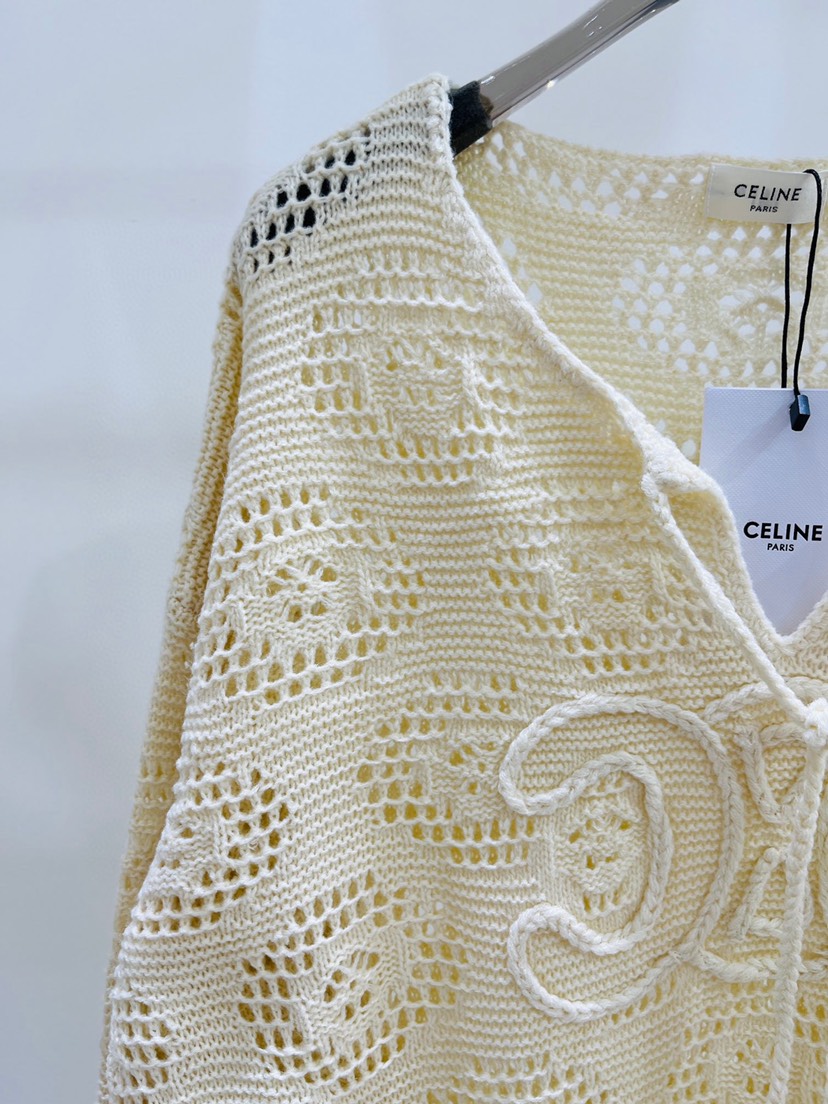 • New Celine Early Autumn New V-Neck Triumphal Hollow Tassel Knit Top