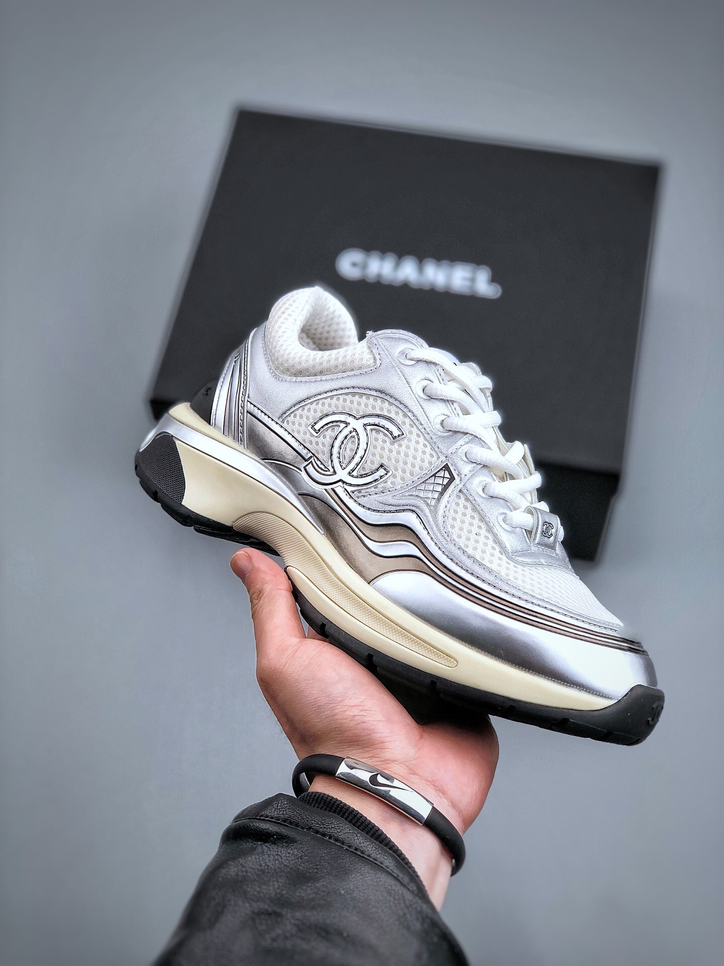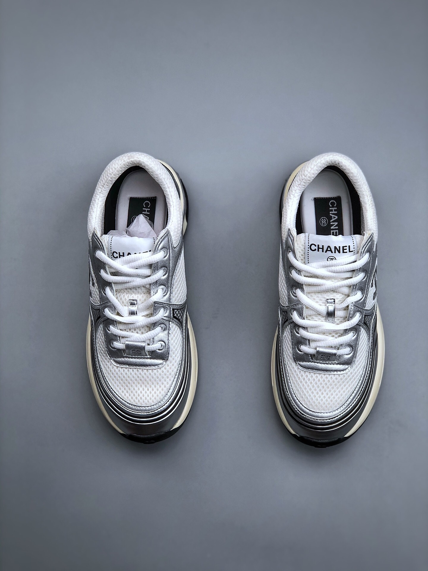 DetailChanel Chanel 23c Early Spring Vacation Series Xiaoxiang Metal Casual Sports Shoes Gold and Silver Corner King's latest foreign runway series Chanel Chanel 2023 Early Spring Series is held in the second smallest country in the world. Inspired by Monaco's international seaside lifestyle, the series has created various and unique new series of Racing driver's helmets, one-piece suits and other elements from F1 racing track to beach swimming pool, casinos to tennis courts, which have been reinterpreted to make the distribution counter more fashionable 🛍📦▪ Fabric: Original imported metal cowhide+technological fabric ▪ Inner lining: Original customized breathable mesh lining ▪ Sole: Original molded ultra light foam combination outsole ▪ Bottom thickness: 3.5cm ▪ Size: Women's 35-40