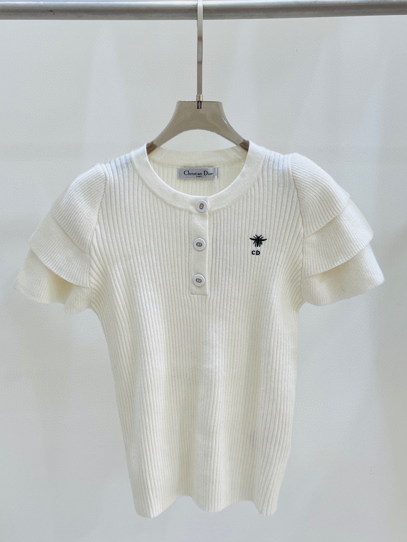 New ❤️ Dior Small Flying Sleeve Knitted Short Sleeve