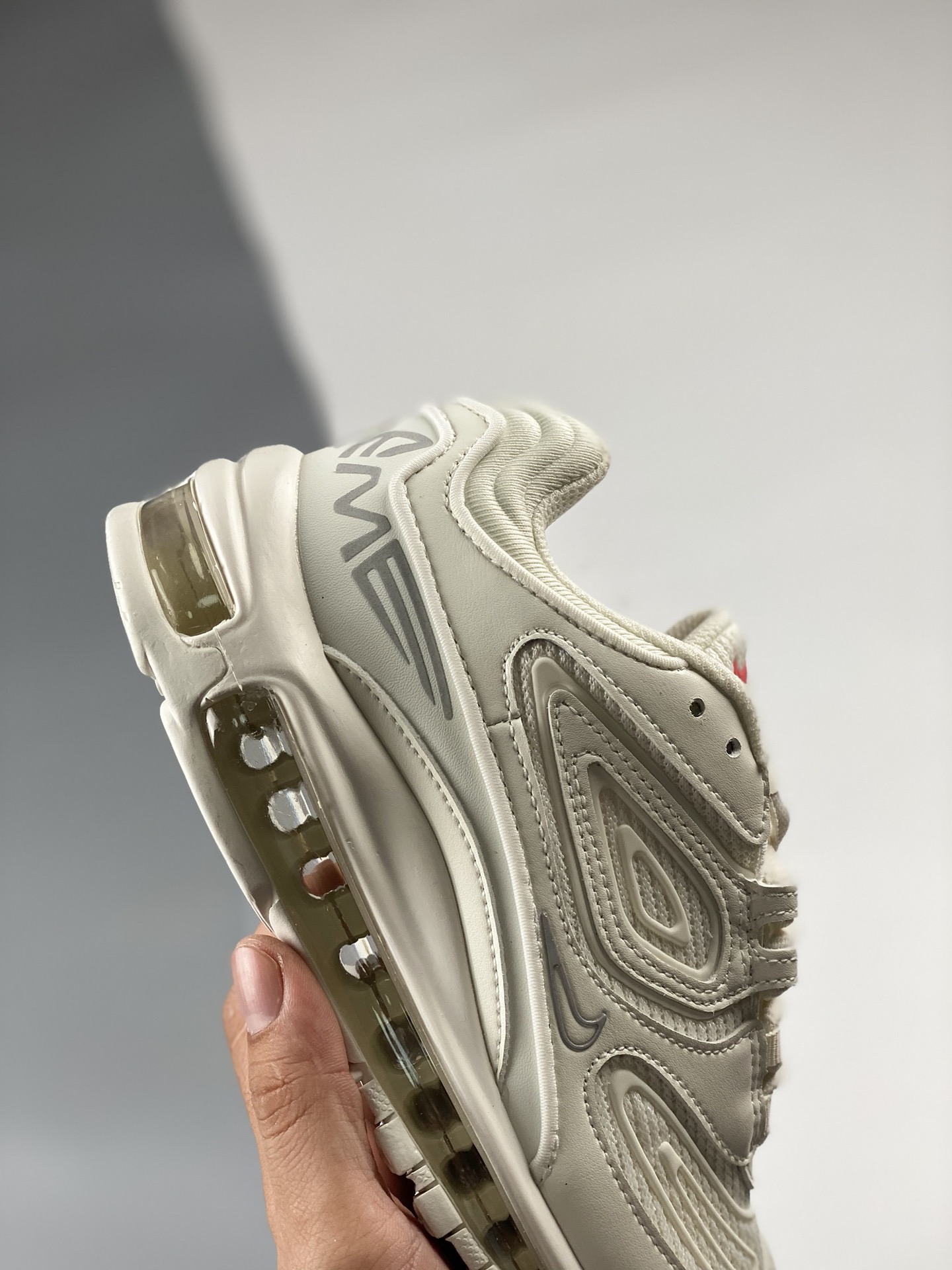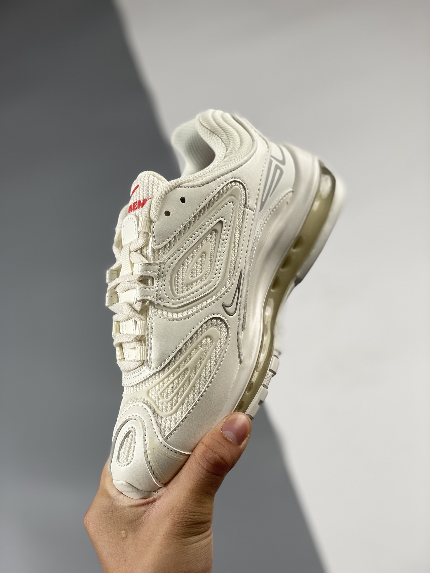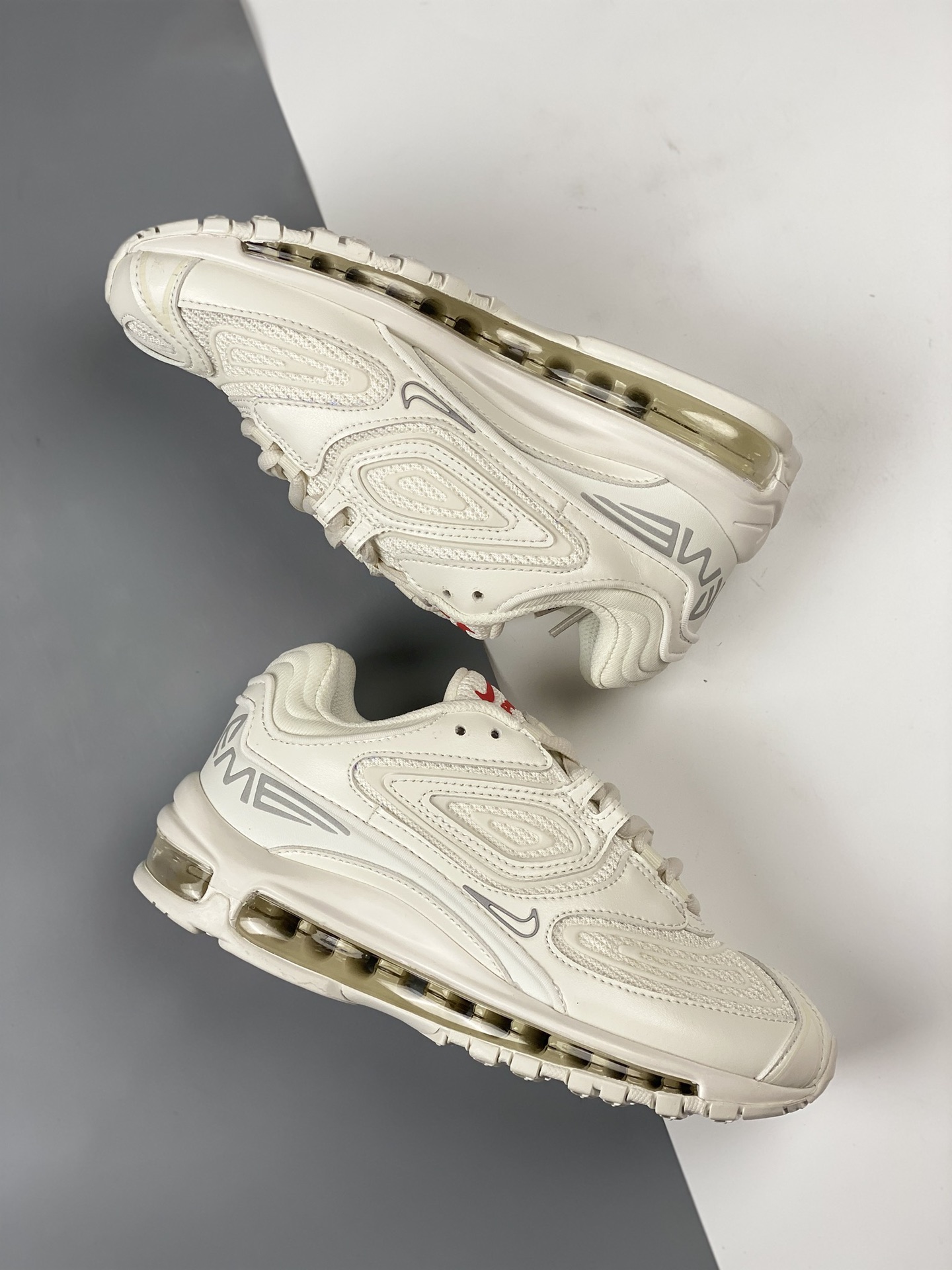 Nike Max 98 Full length Air Cushion Men's Shoe Casual Jogging Shoe Pure White Supreme x Nike Air Maxtl Co branded Upper is made of leather and mesh materials, equipped with a replacement full length Airmax Air Cushion commonly found on Air Max97. The 3m reflective TPU overlay and the "supreme" brand with the "tlair" logo on the heel have completed the design. They will come with co branded tags, insoles, and packaging. Product number: dr1033-100 Size: 39 40 40.5 41 42 42.5 43 44 44.5 45
