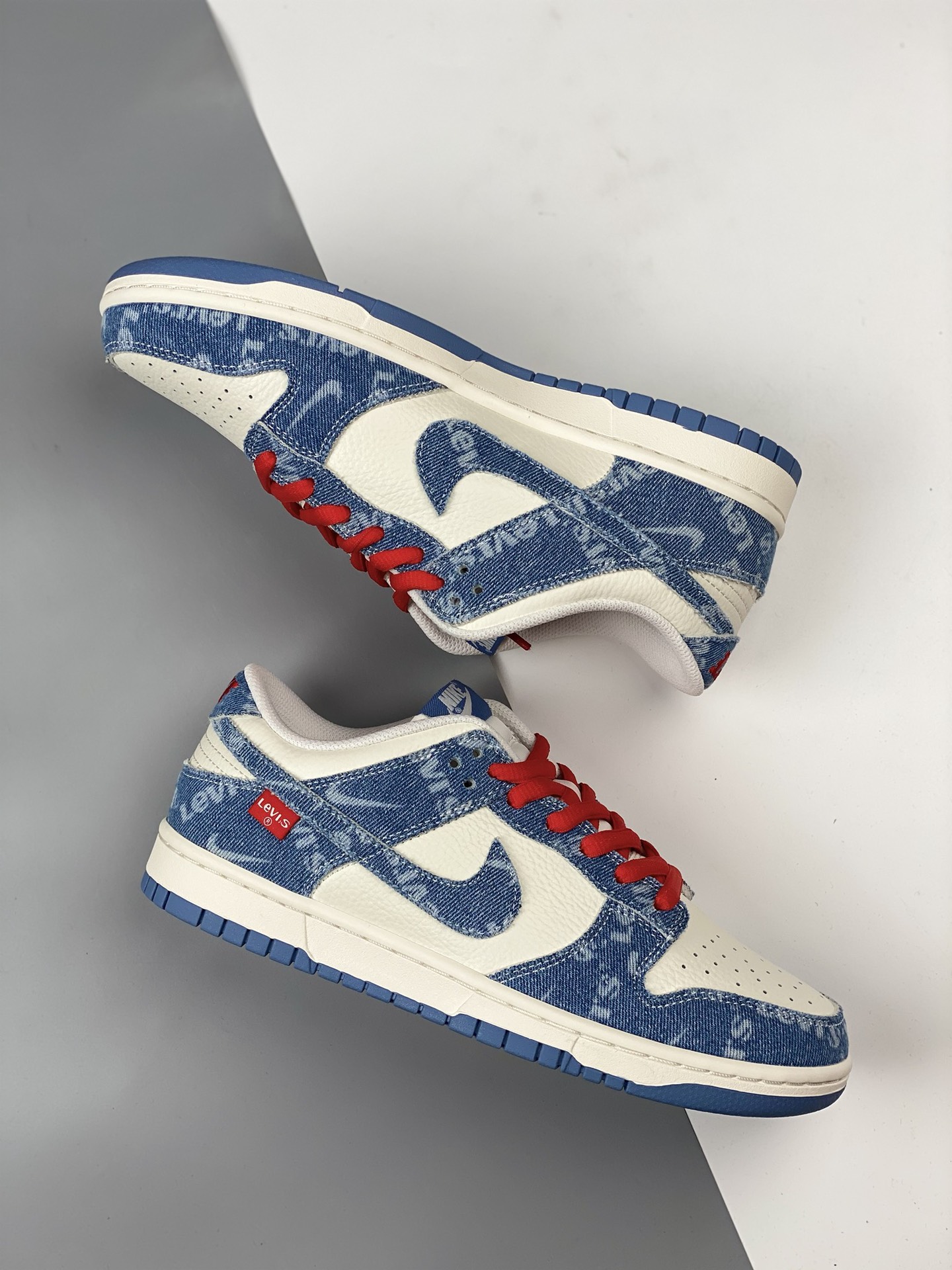 Nike dunk low levi's light blue Denim Levi's co named this shoe body is covered with a large area of canvas material, with white as the background color, matching the denim blue frame and swoosh design, the overall appearance is simple and versatile. In addition, the stitching on the shoe body is also outlined with white stitching to enhance the overall sense of layering. The previous word 'nike' has also been removed from the heel. The sole is designed with a white midsole and a blue rubber outsole, which complements the color scheme of the shoe. Article number: le0021-002