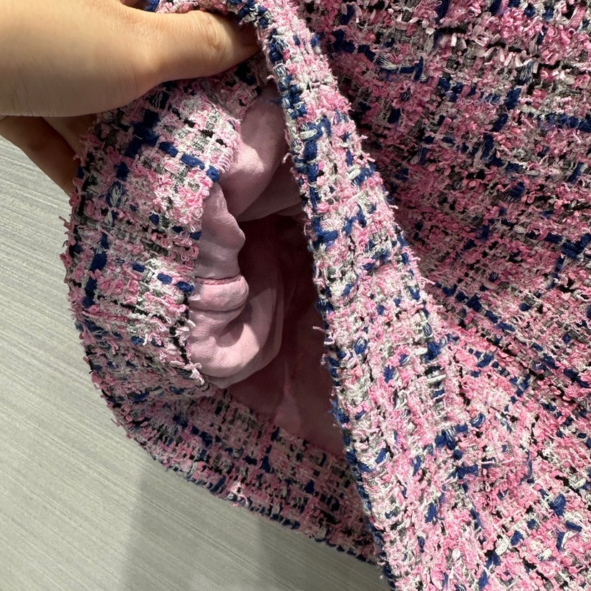 Chan * l 23p agency purchase of popular products! Pearl strap dress! White, rich, and beautiful must enter the high-end colored yarn, pink, and blue woven soft tweed fabric, which is super beautiful! The pearl shoulder strap with green crystal color scheme is incredibly beautiful! French court style, elegant and luxurious luxury item essential for famous ladies! Overweight craft Handmade Pearl Shoulder Strap! The original development fabric has a 3D three-dimensional cutting pattern that makes the upper body appear huge and thin. The counter features a molded glass drop oil gradient blue green metal buckle, with an original 100% silk camellia jacquard lining. Perfect workmanship quality depends on details. Color 3. Throw over the big order